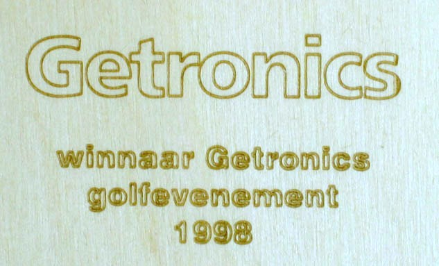 Een ander voorbeeld van het laser-printen ziet u op nevenstaande foto. De zijkant van deze broodplank is voorzien van een tekst die een continue aandachtswaarde heeft. Andere voorbeelden van laser-printen ziet op nevenstaande foto's. |